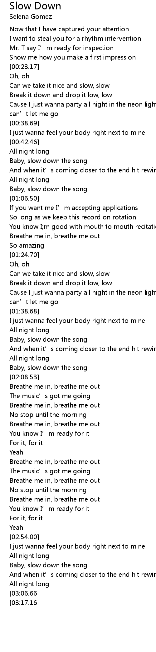 | [00:44.38] | Baby, slow down the song |