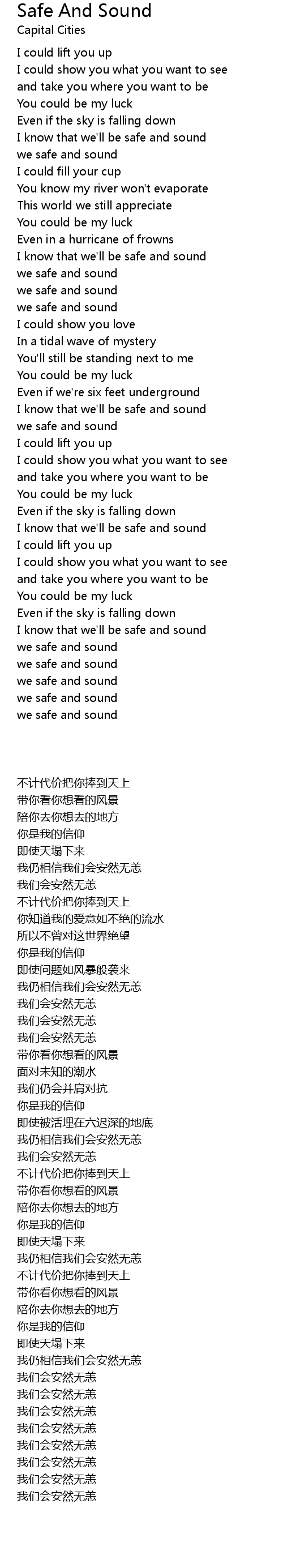 I know that we'll be safe and sound |