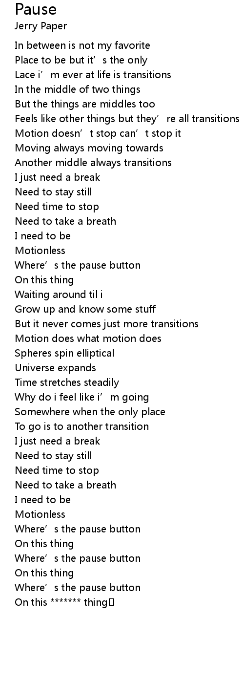 | [00:53] | Motion doesn’t stop can’t stop it |