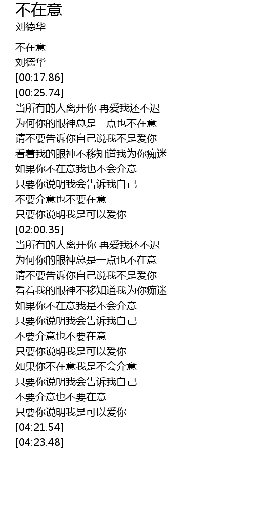 | [03:24.51] | 如果你不在意我是不会介意 |