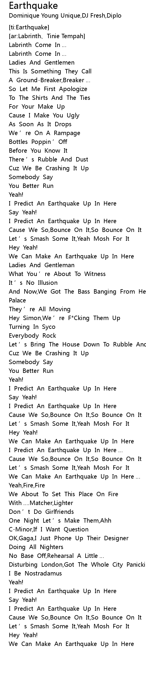 | [00:55.25] | I Predict An Earthquake Up In Here |