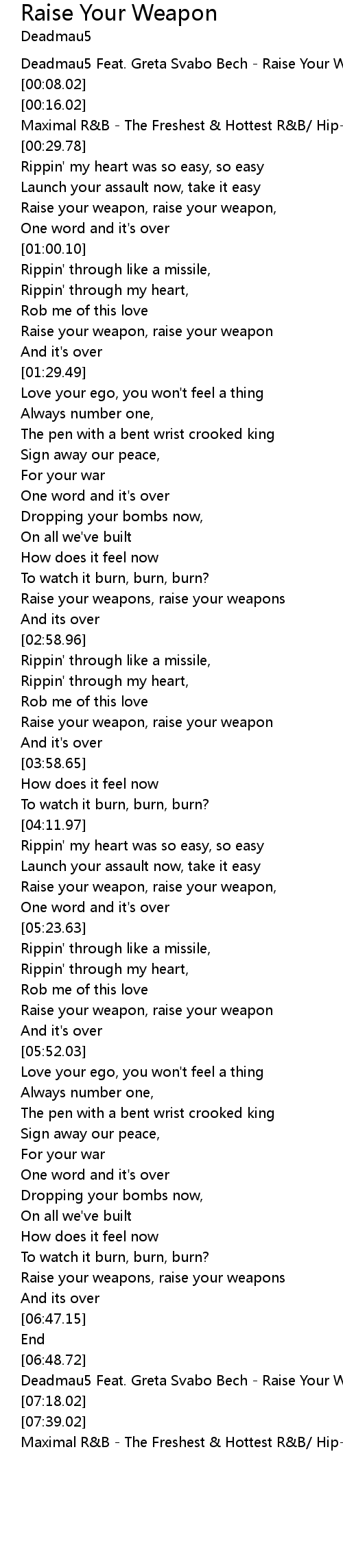 Deadmau5 Feat. Greta Svabo Bech - Raise Your Weapon |