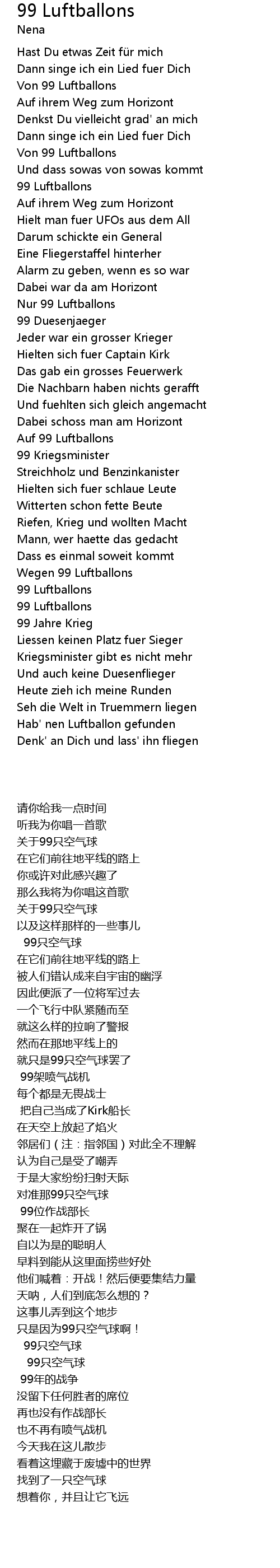 | 歌曲 | 99 Luftballons |