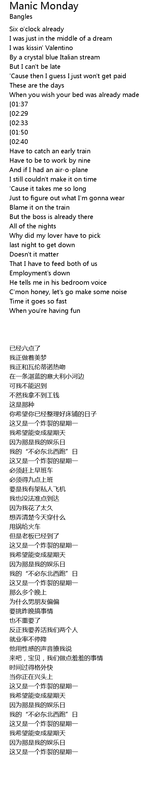 [02:52][02:40][01:53][01:03] It's just another manic Monday