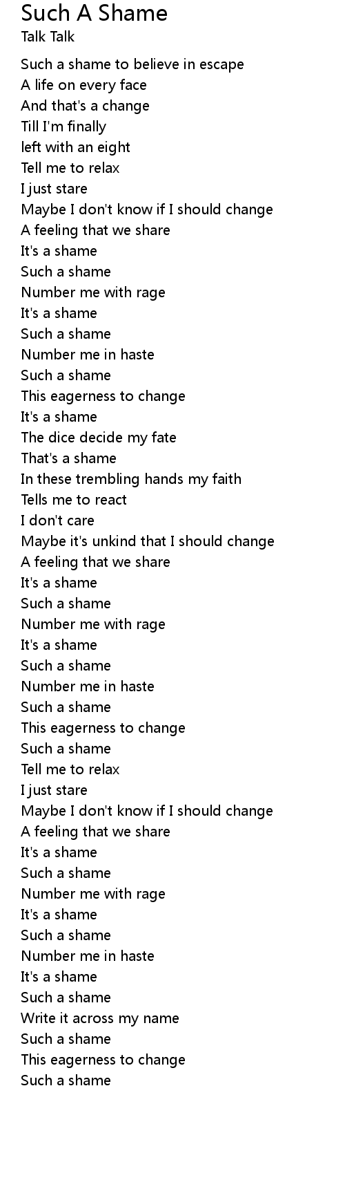 Such A Shame 歌词