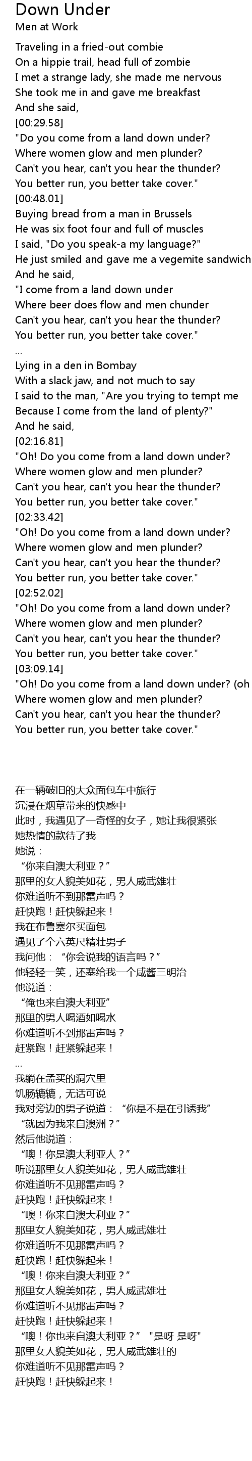 "Oh! Do you come from a land down under? (oh yeah yeah) |