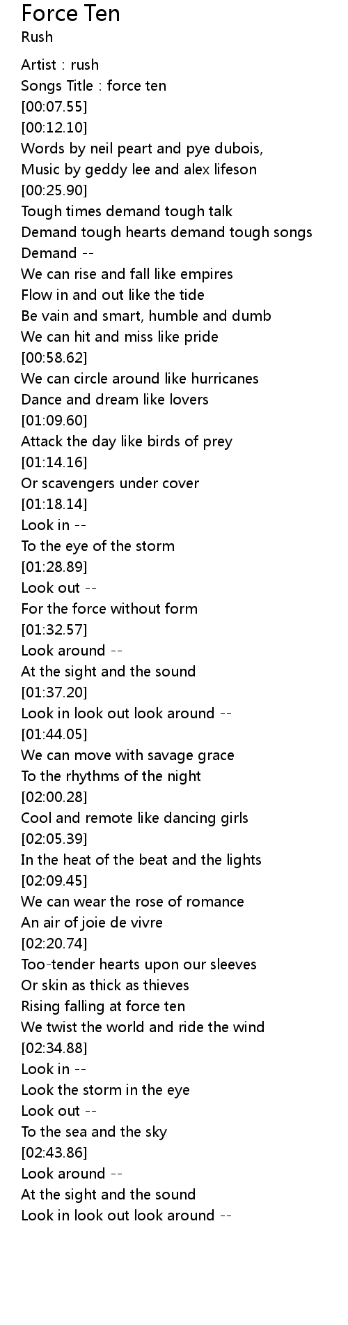 | [00:19.35] | Music by geddy lee and alex lifeson |