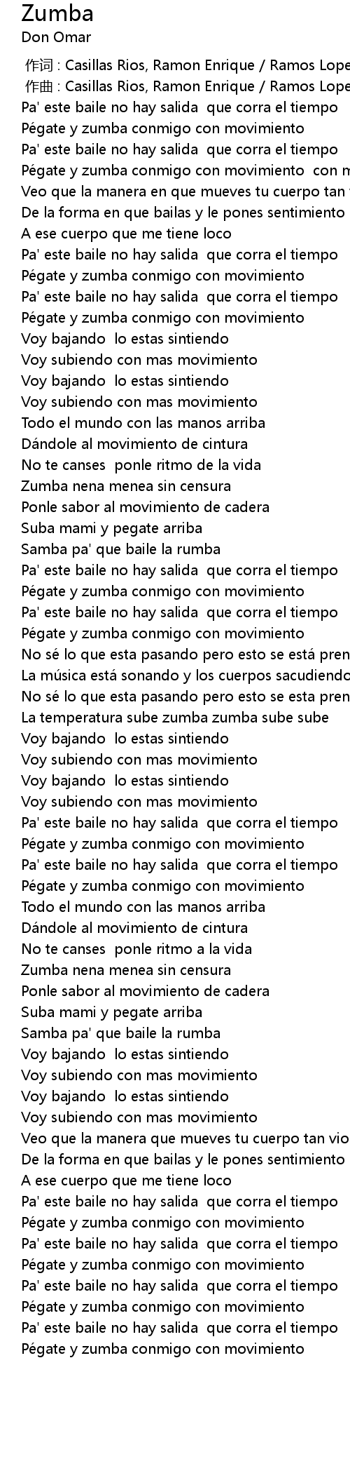 | [02:08.79] | La temperatura sube zumba zumba sube sube |