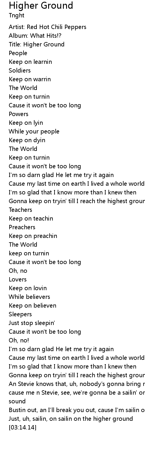 [02:51.31] Gonna keep on tryin' till I reach the highest ground