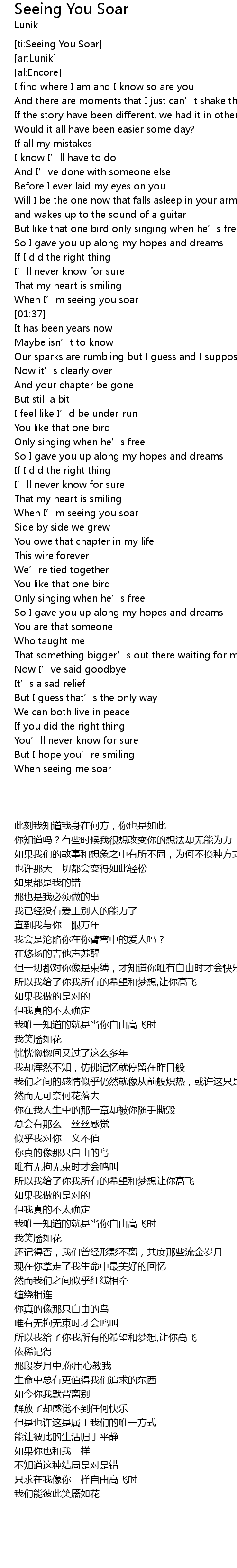| [01:17] | 所以我给了你我所有的希望和梦想,让你高飞 |