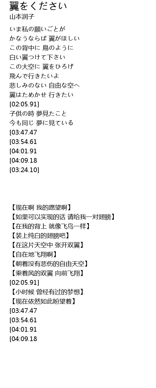 | [00:46.02] | 【如果可以实现的话 请给我一对翅膀】 |