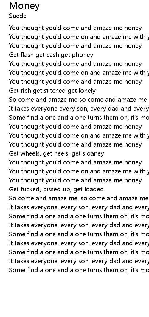 You thought you'd come on and amaze me with your money |
