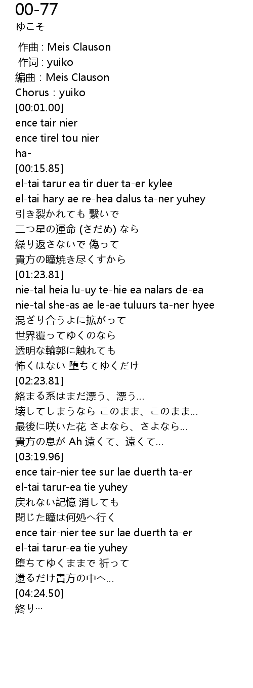 | [01:31.49] | nie-tal heia lu-uy te-hie ea nalars de-ea |