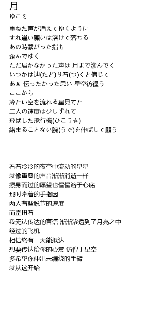 | [01:07] | 我无法传达的言语 渐渐渗透到了月亮之中 |