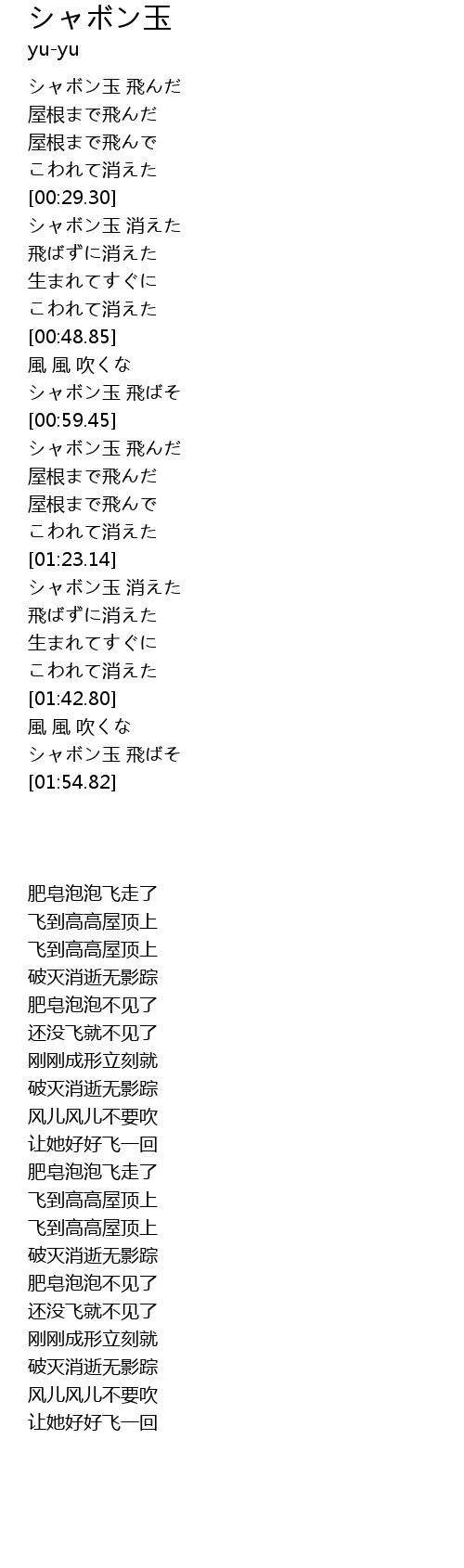 | [01:23.63] | シャボン玉 消えた |