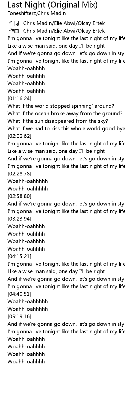 | [04:15.30] | I'm gonna live tonight like the last night of my life |