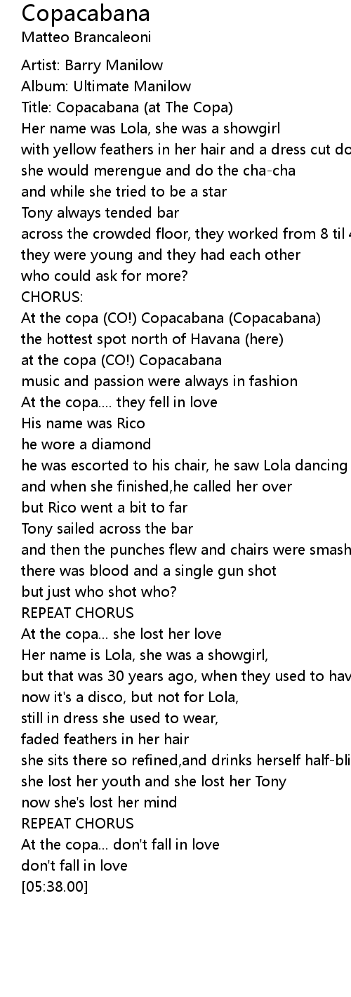 Title: Copacabana (at The Copa) |