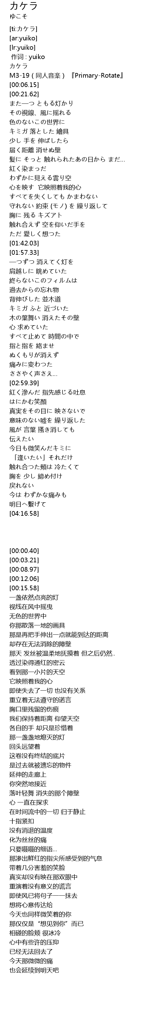 | [00:00.00] | zuo ci : yuiko |