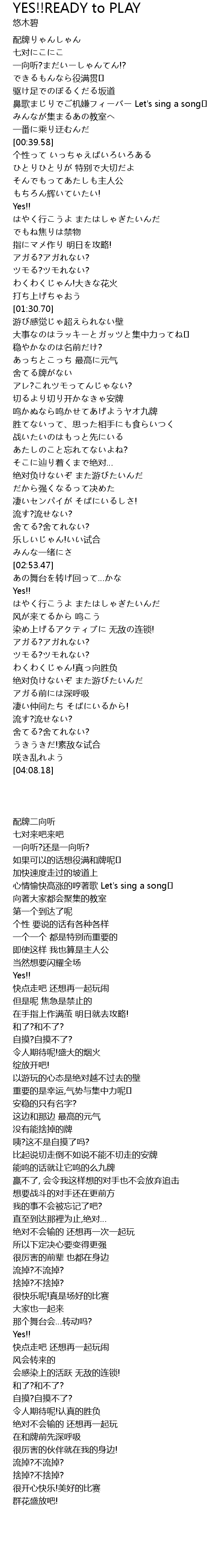 | 歌曲 | YES!!READY to PLAY |