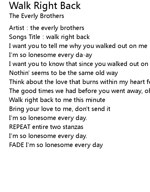 | Songs Title: walk right back | |