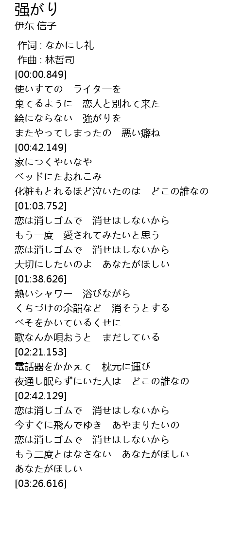 | [03:09.741] | もう二度とはなさない あなたがほしい |