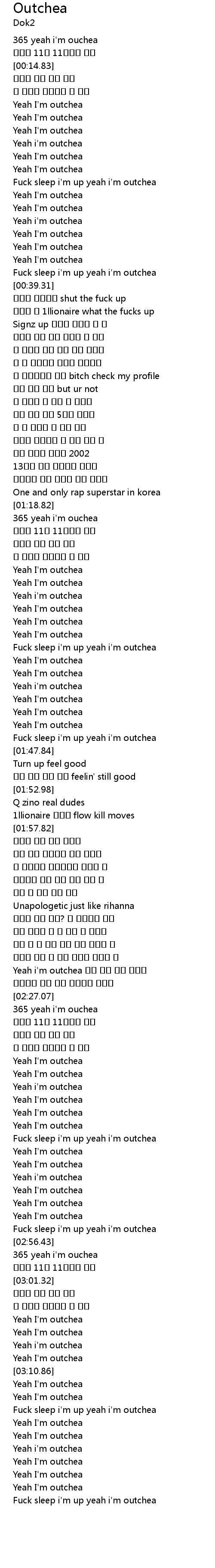 | [01:19.60] | 365 yeah i' m ouchea |