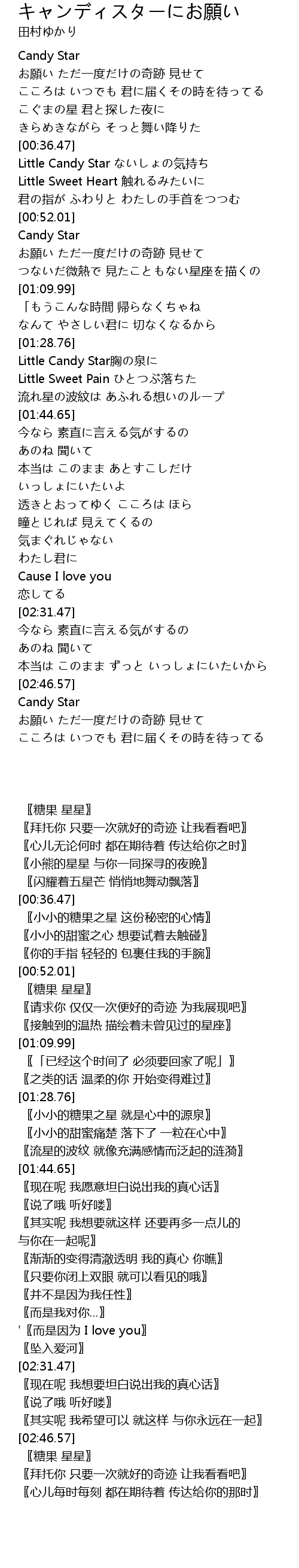 | [00:37.47] | 〖小小的糖果之星 这份秘密的心情〗 |