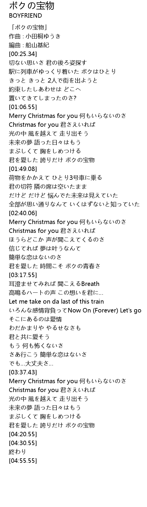 | [03:38.84] | Merry Christmas for you 何もいらないのさ |