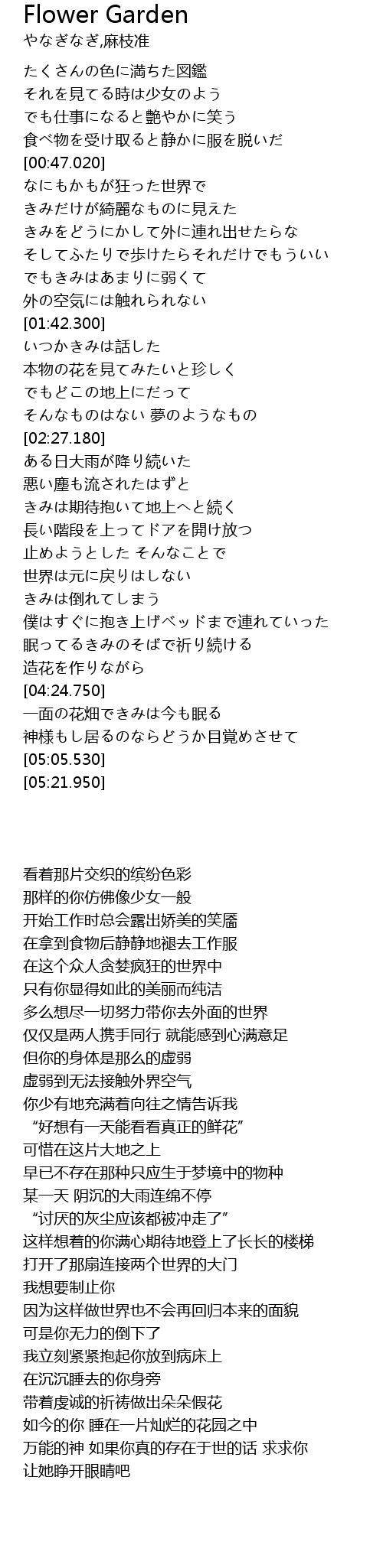 | [04:35.940] | 如今的你 睡在一片灿烂的花园之中 |