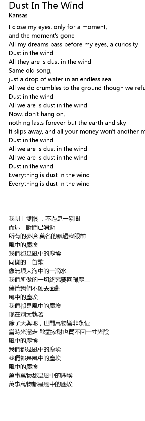 Dust In The Wind 歌词
