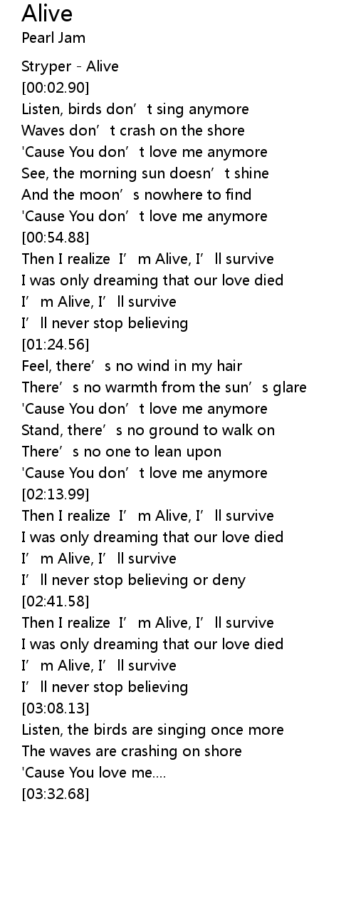 | [02:41.88] | Then I realize I’m Alive, I’ll survive |