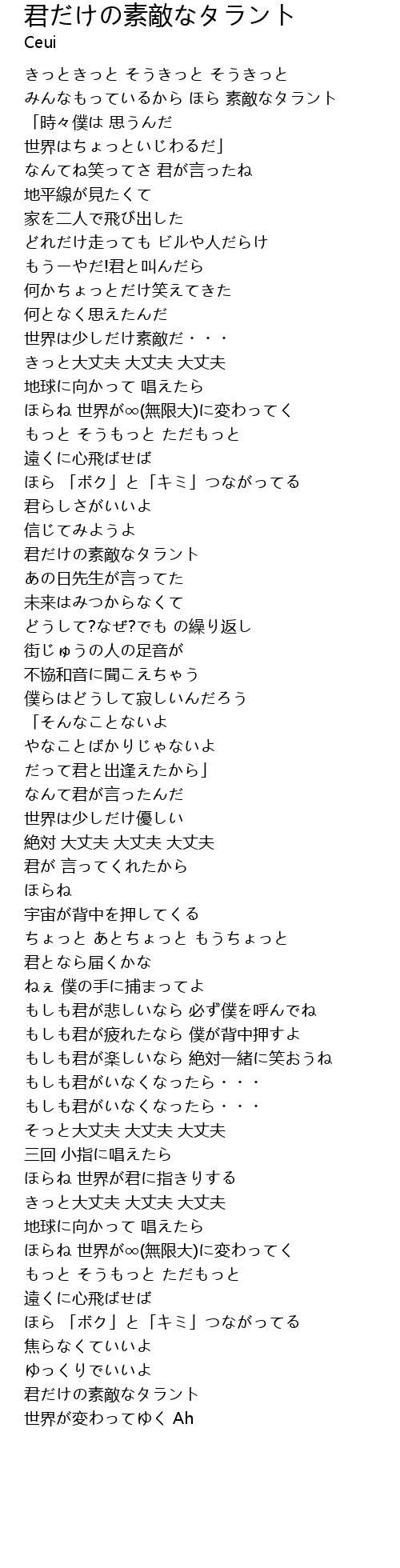 | ほらね 世界が∞(無限大)に変わってく | |