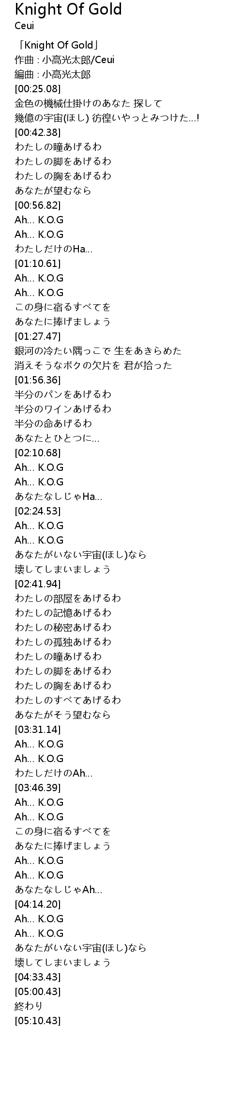 | [02:14.81] | Ah… K.O.G |