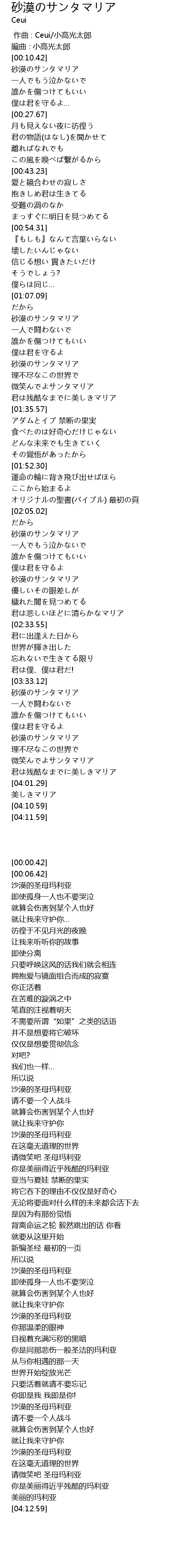 | [00:11.42] | 砂漠のサンタマリア |