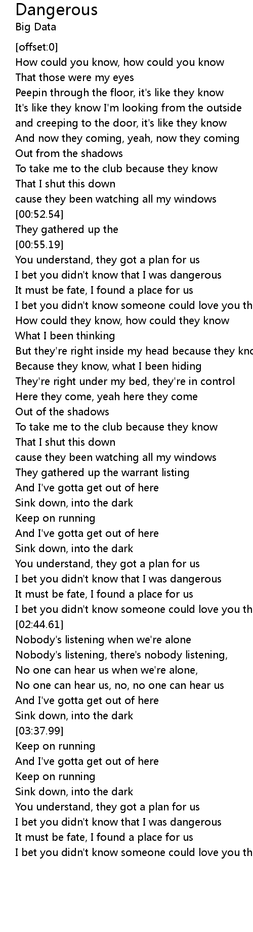 | [04:00.78] | I bet you didn't know that I was dangerous |