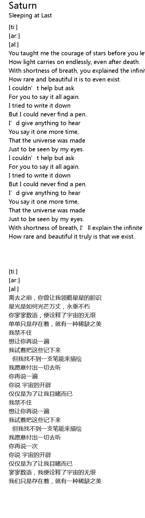 | [02:26.14] | You taught me the courage of stars before you left. |