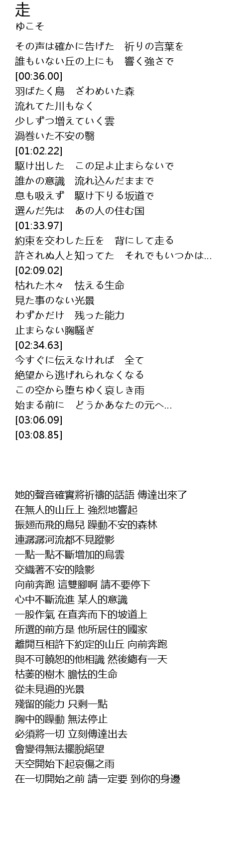 | [02:59.00] | 始まる前に どうかあなたの元へ… |