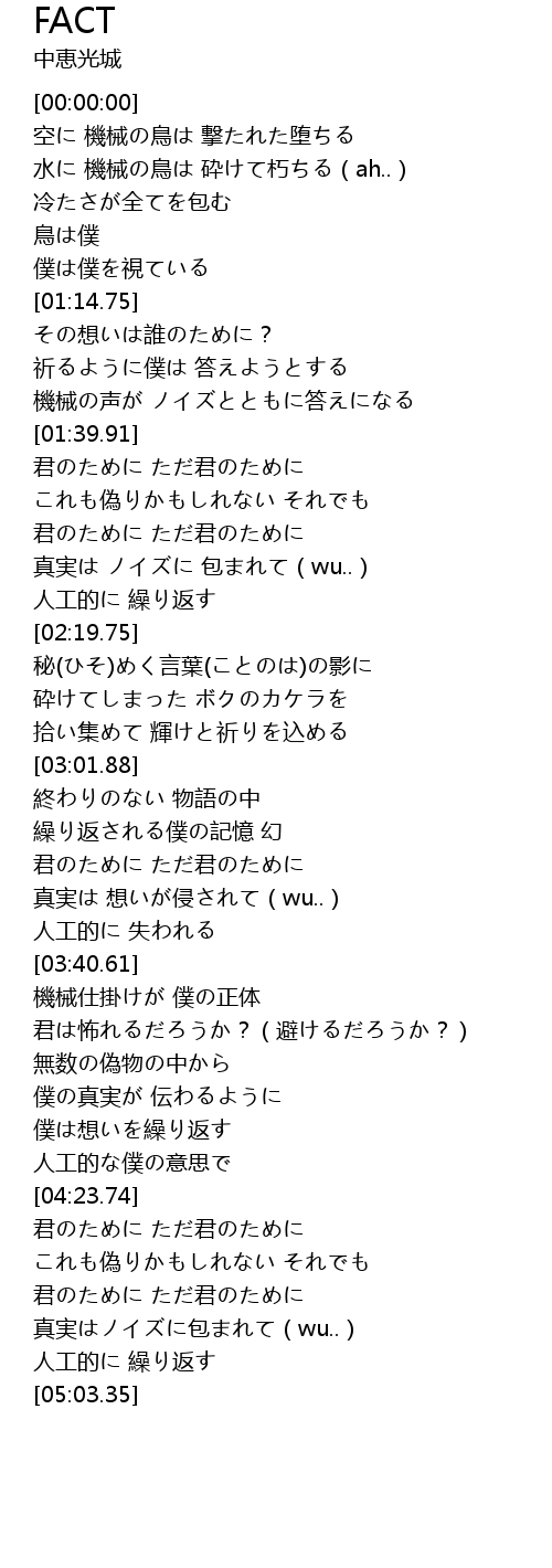 | [01:59.21] | 真実は ノイズに 包まれて(wu..) |