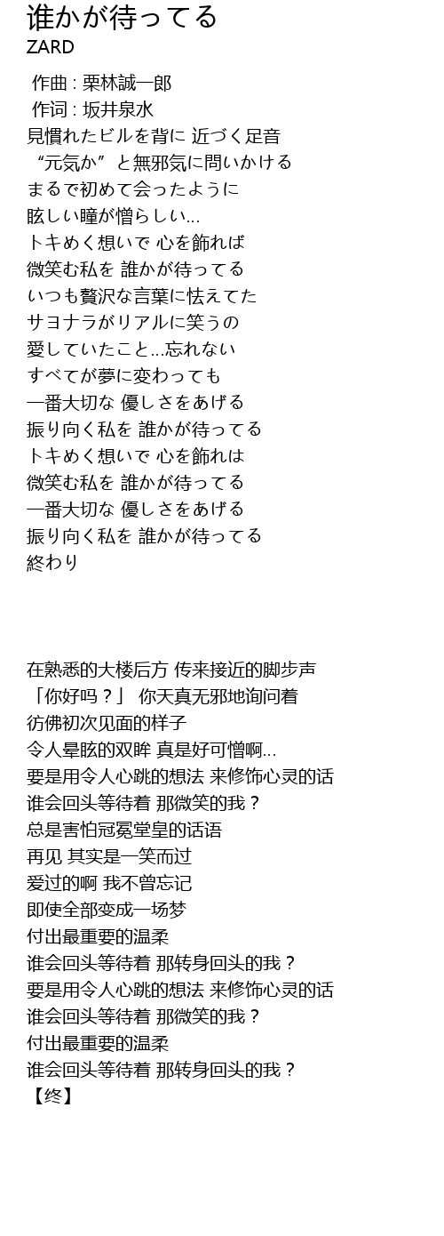 | 歌曲 | 谁かが待ってる |