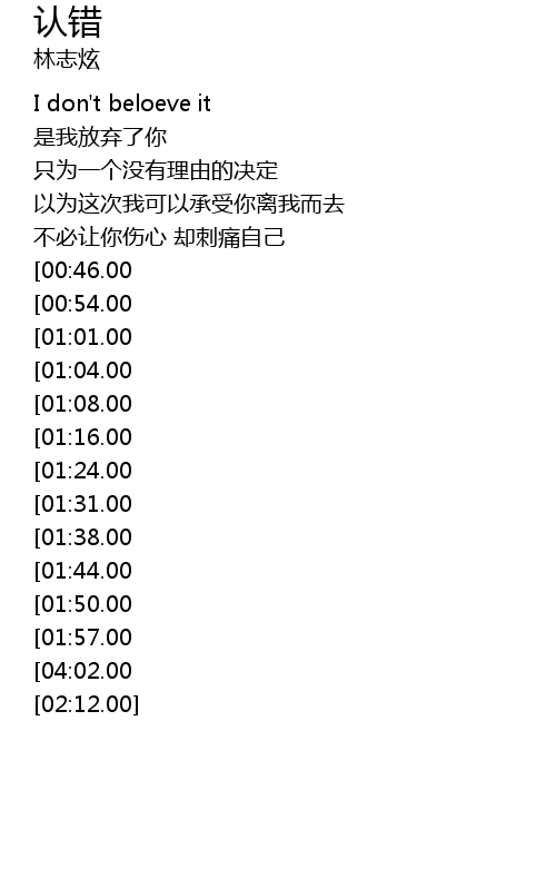 | [03:35.00][01:38.00] | 是我自己错误的决定 |