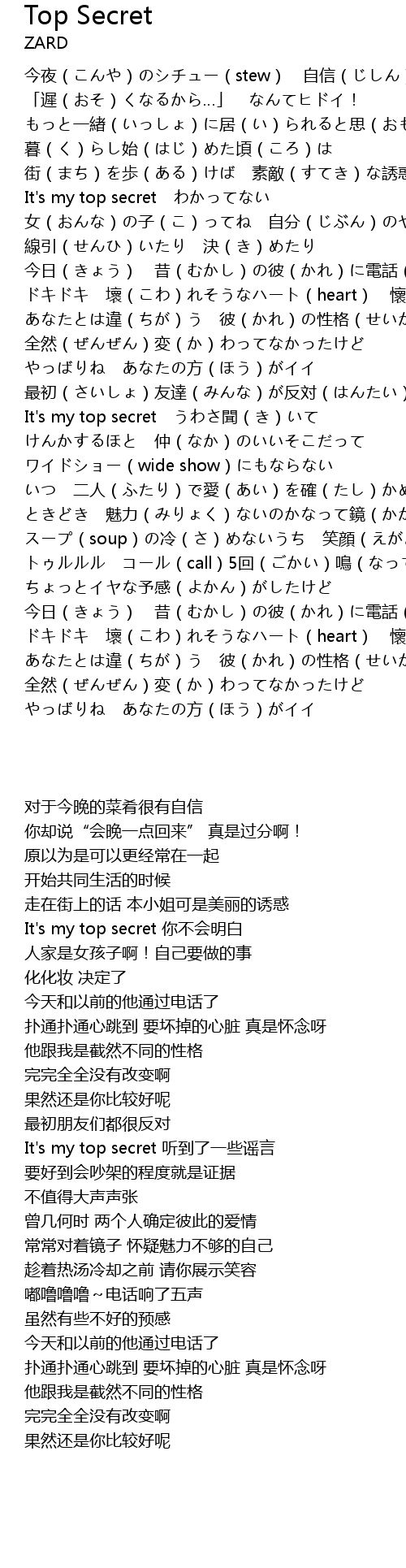 | [00:59.47] | It's my top secret わかってない |