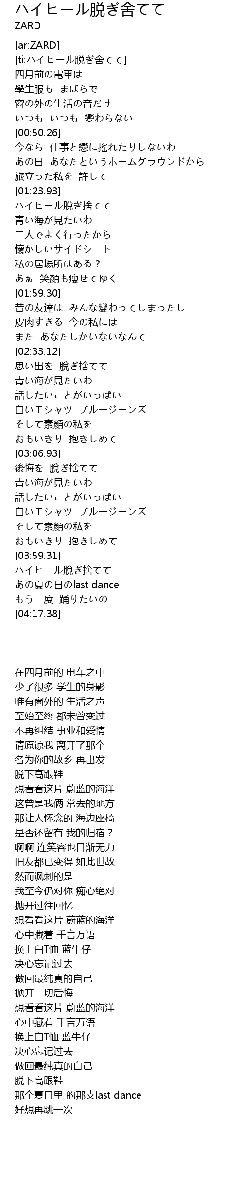 | [04:01.11] | ハイヒール脫ぎ捨てて |