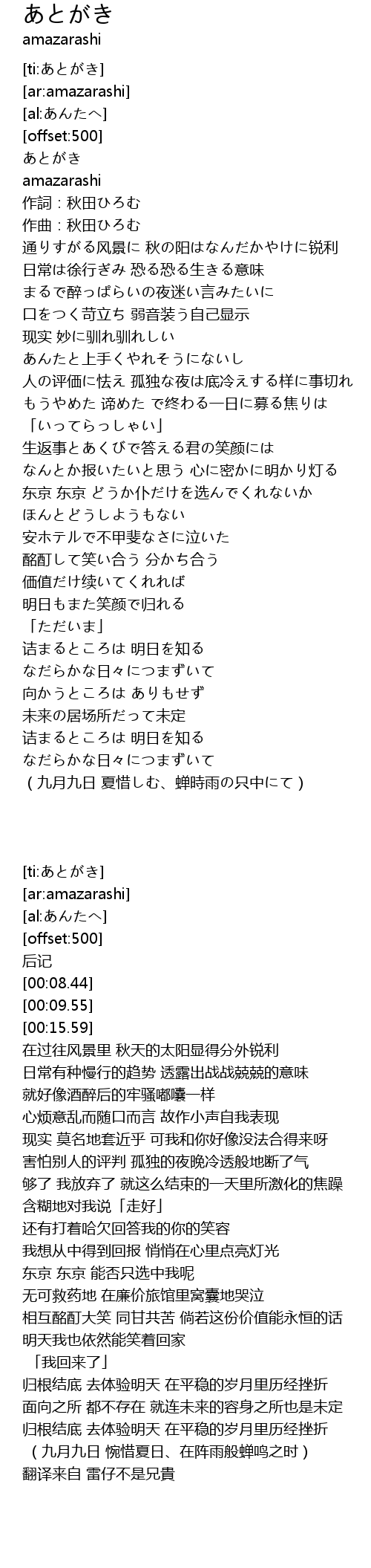 | [00:06.98] | あとがき |