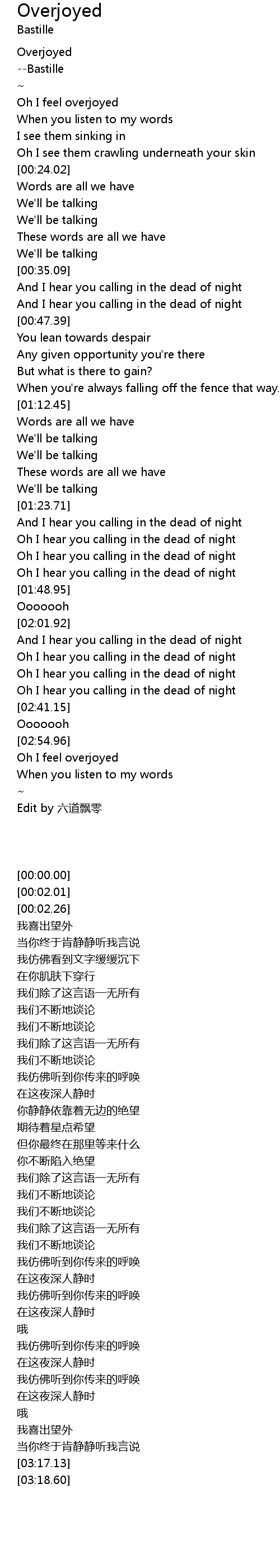 | [03:18.60] | Edit by 六道飘零 |