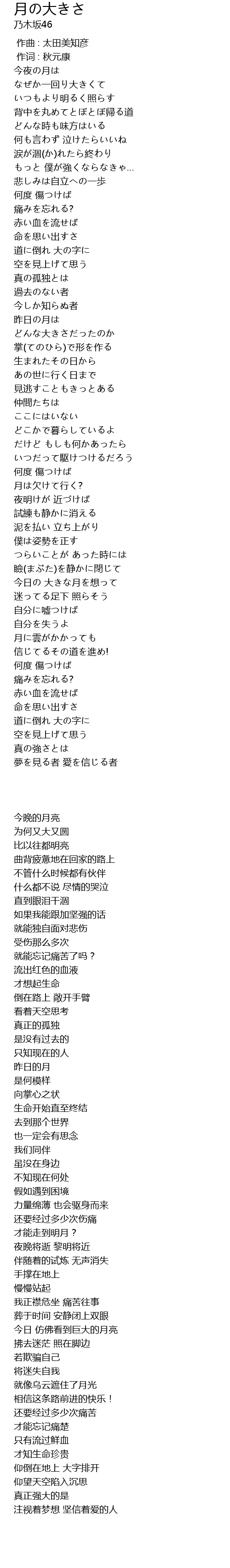 | 歌曲 | 月の大きさ |