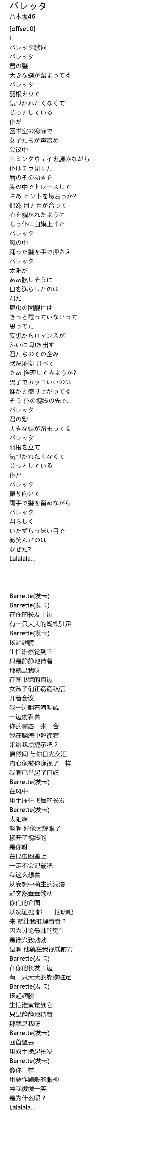 | [00:05.184] | バレッタ歌词 |