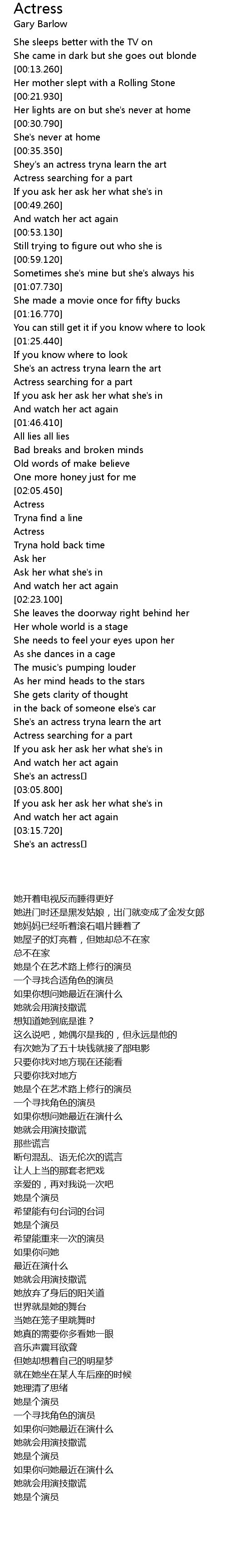 | [03:16.410] | 她是个演员 |