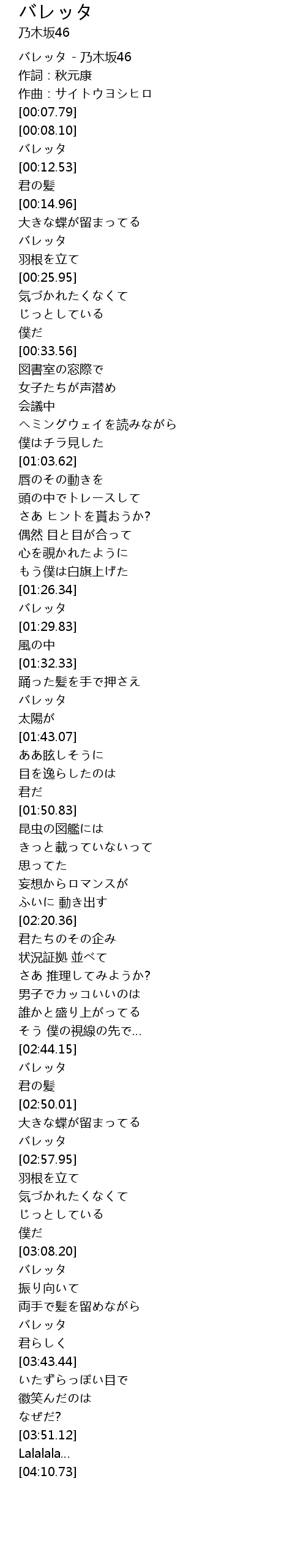 | [00:00.64] | バレッタ - 乃木坂46 |