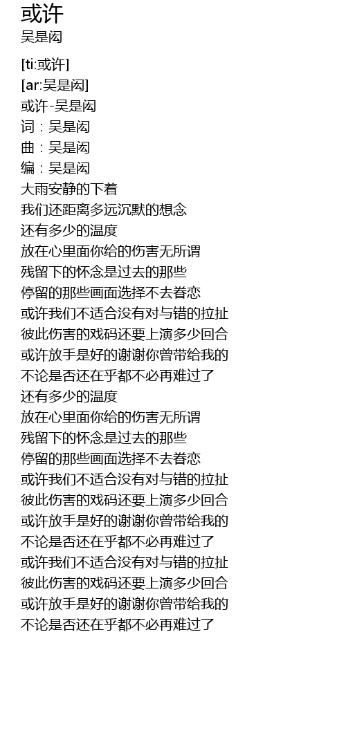 | [00:00.837] | 或许-吴是闳 |