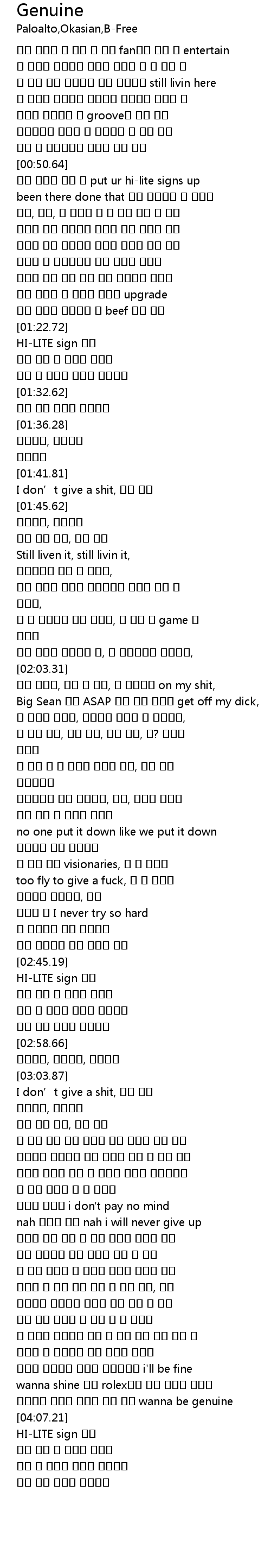 | [04:03.87] | 무엇보다 진정한 사람이 되고 싶어 wanna be genuine |